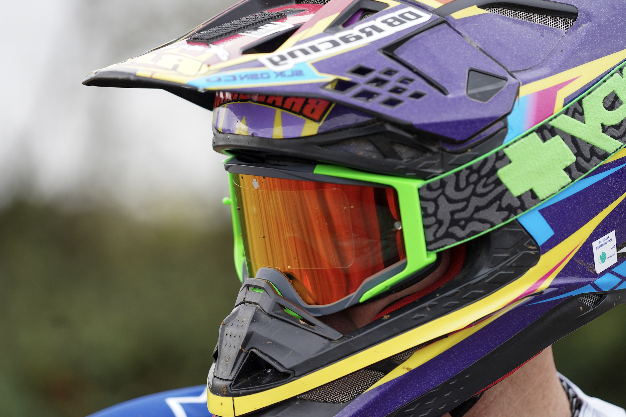 I tried this new innovative anti scratch lens cover while racing. I was on track for all three motos and practice without one tear off! Could this be the future without roll offs or tear offs? It worked well in the fine sand. Research and development started.
